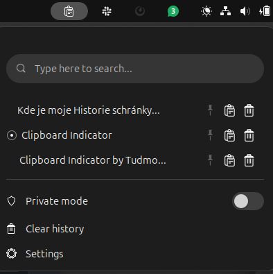 Další užitečnou věcí, kterou Windows oplývají je Historie schránky. Prostě občas toho potřebuju kopírovat víc a nebo spouštět nějaké příkazy, kusy kódu. Ctrl + C a Win + V bylo vždy mojí záchranou a tuhle funkci v Ubuntu postrádám a měla by být v základu!